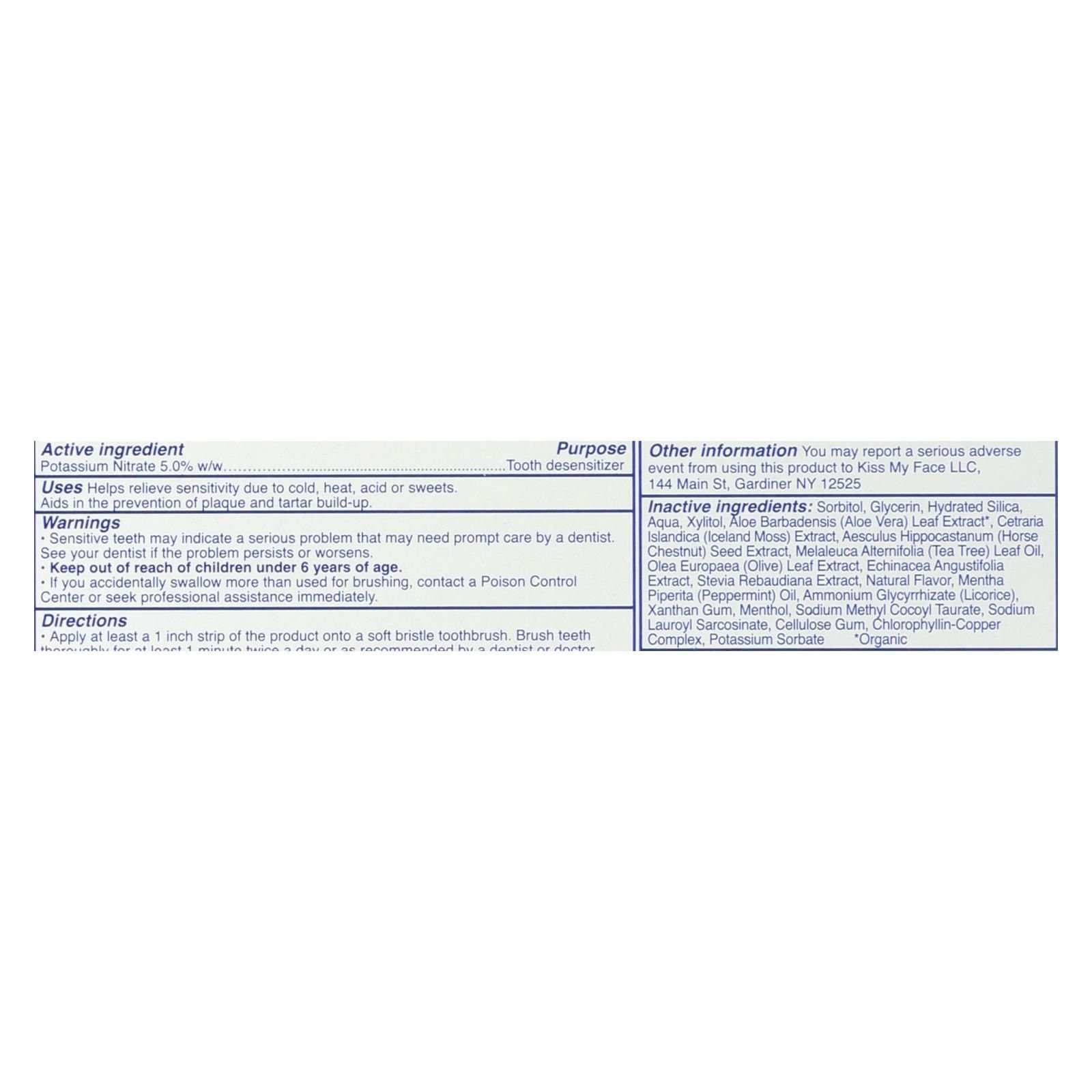 Kiss My Face Toothpaste - Sensitive - Fluoride Free - Gel - 4.5 Oz