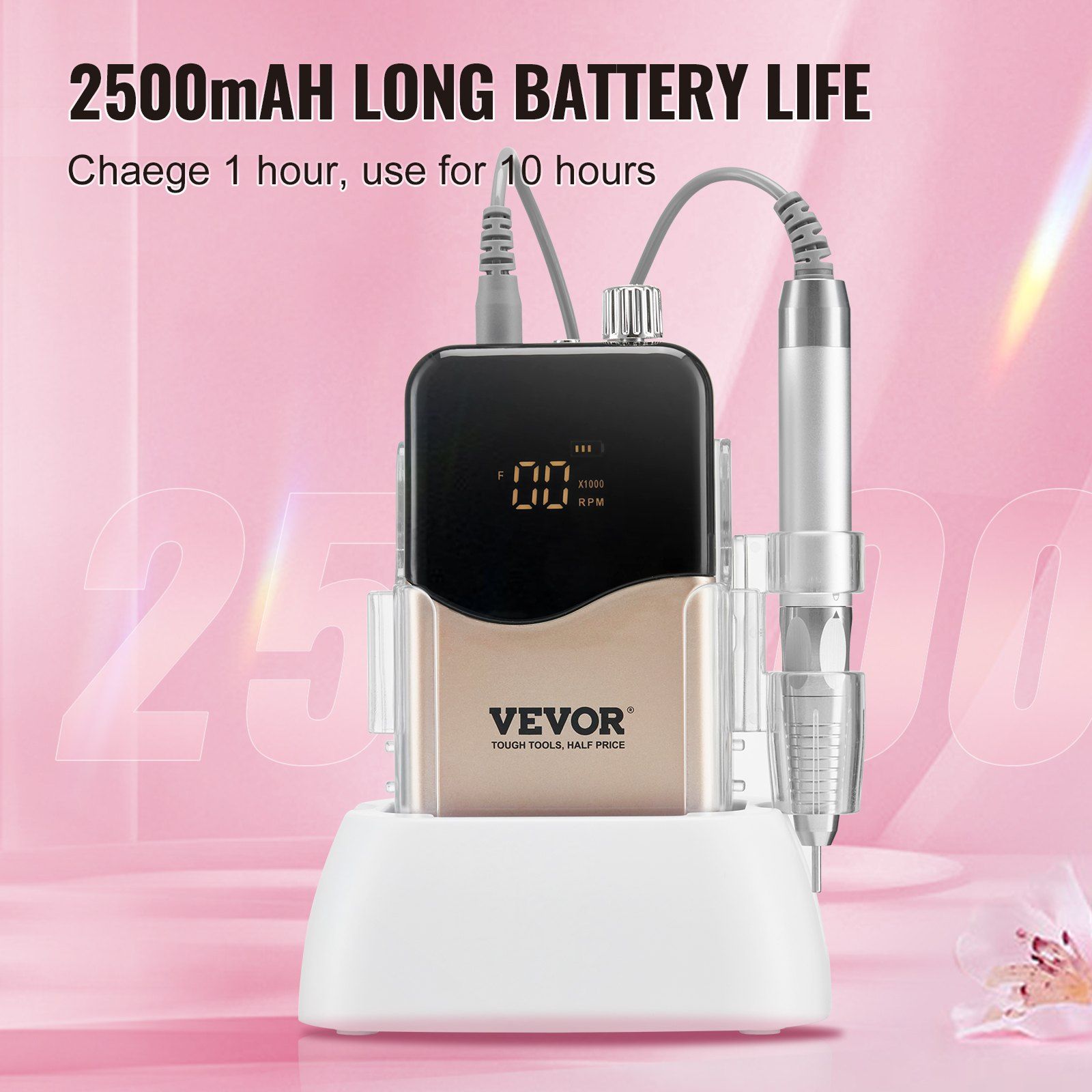 Experience nail care like never before with VEVOR cordless electric nail drill. Equipped with a 35000 RPM high-speed brushless motor, it delivers higher efficiency, lower vibration, and smoother operation. With variable speed control, tailor the nail drill's speed to suit your different needs