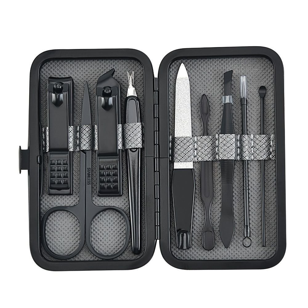 9pcs/set Portable Nail Clipper Cutter File Cuticle Pusher Tools Set For Manicure Pedicure