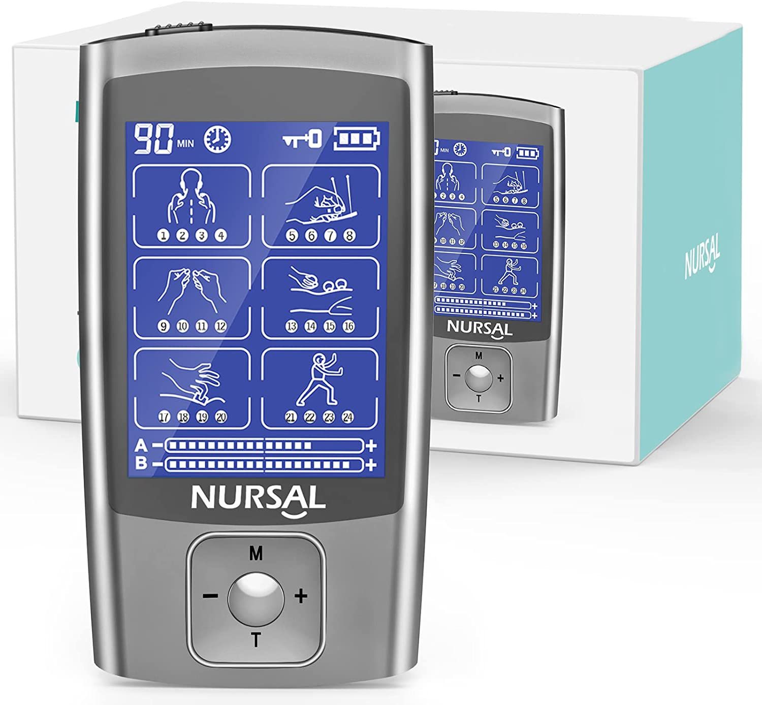 Transcutaneous Electrical Nerve Stimulation; or TENS; is a non-invasive; drug-free pain relief method not a cure for any physiological ailment. It uses small electrical impulses sent through the skin to stimulate the nerves in the an affected area of the body to modify your pain perception. For most users; TENS unit is very effective in reducing; or eliminating pain; allowing for a return to normal; everyday activity. | Electrical Muscle Stimulation helps by increasing blood flow to muscles; increasing range of motion; increasing muscle strength; as well as enhancing muscle endurance. Muscle Stimulators have pain management attributes in helping muscle-related pain; such as spastic muscle; sore muscles; or tight muscles. | Constant Pulse Massage Modes can steadily output current and reduce the stimulation caused by pulse instability. This ensures the elderly or sensitive people will enjoy the NURSAL Tens unit. |