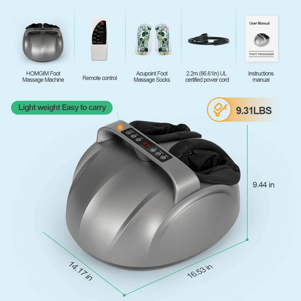 Commodity features: internal: air compression, Toes: knee rolling, arch: knee + scrape + roll, heel: knee + press, ankle: air compression; foot massage massager foot therapy instrument, electric massage device to relieve foot pain, new rotating button operation precise temperature control, heating wireless air compression blood massage meter, extrusion pressure foot massage, air wave pressure massage meter, multi-touch foot massage matrix, promote shoulder blood circulation, ergonomic design foot natural physiological curve wear more comfortable