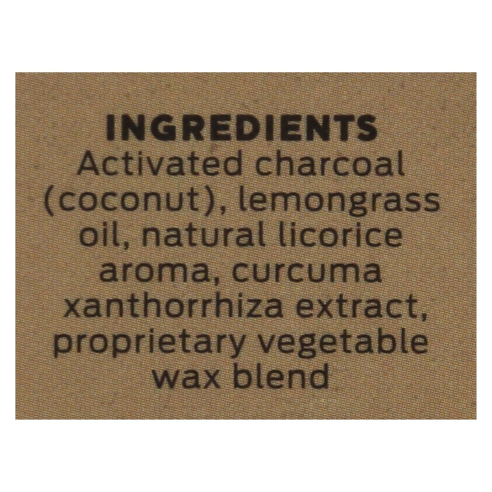 ingredients : activated charcoal;coconut;lemongrass oil;natural licorice aroma;curcuma xanthorrhiza extract;proprietary vegetable;wax blend