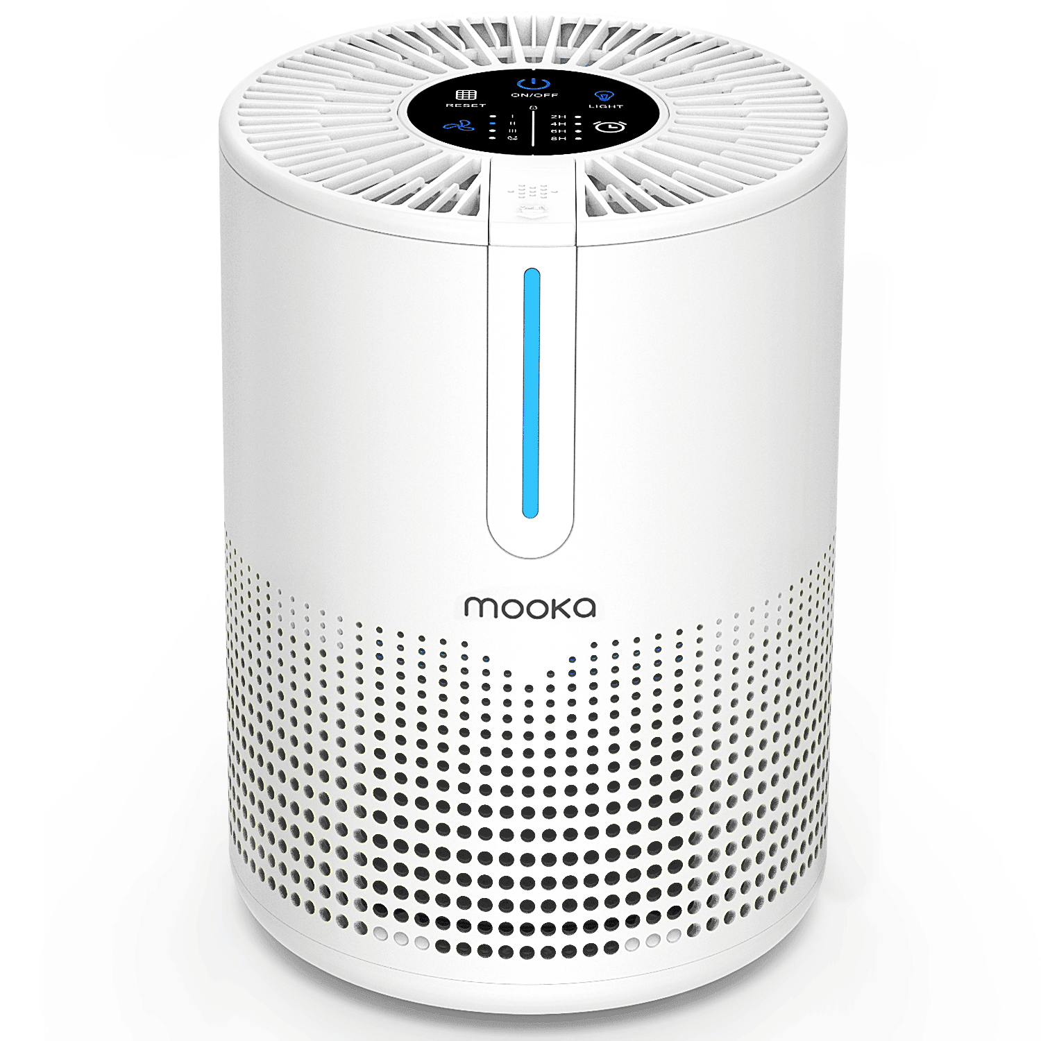 1.3-STAGE HIGH-PERFORMANCE H13 HEPA FILTER & 360° AIR INTAKE: MOOKA air purifier for pets with H13 True HEPA filters can effectively removes dust, smoke, pollen, dander. This room air purifier uses advanced air spiral technology and 360-degree air inlet and outlet, which can refresh the air in spaces up to 430 sq.ft. With a 25% increase in purification efficiency, it makes for a healthier and more comfortable living environment.