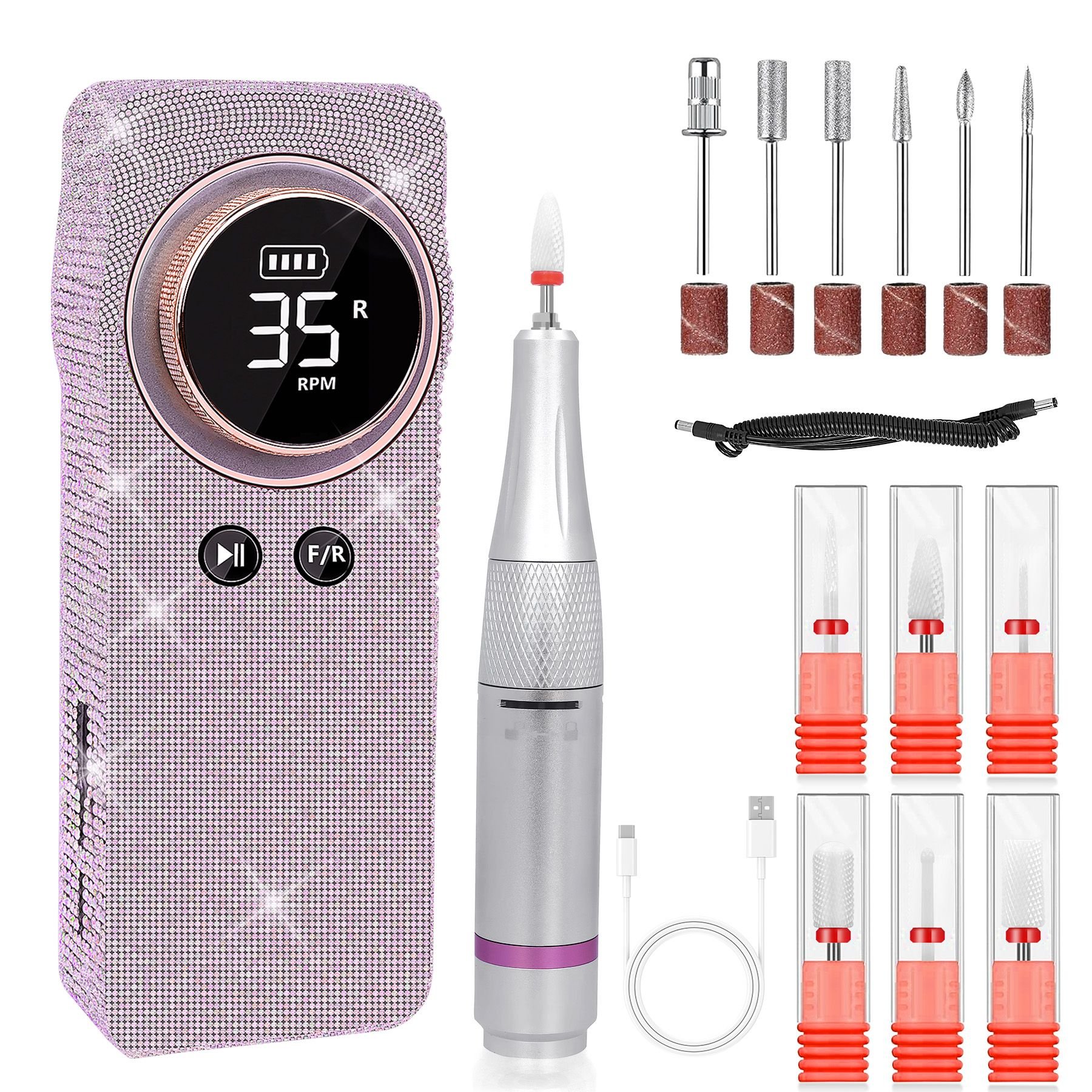 3. [Multifunctional]: Experienced The Power of our Professional Rechargeable 35000 RPM Nail Drill, a versatile manicure and pedicure tool for both home and salon use. It's designed for carving, engraving, routing, grinding, sharpening, sanding, cutting, and polishing, making it great for acrylic and natural nails, as well as pet nail sanding.