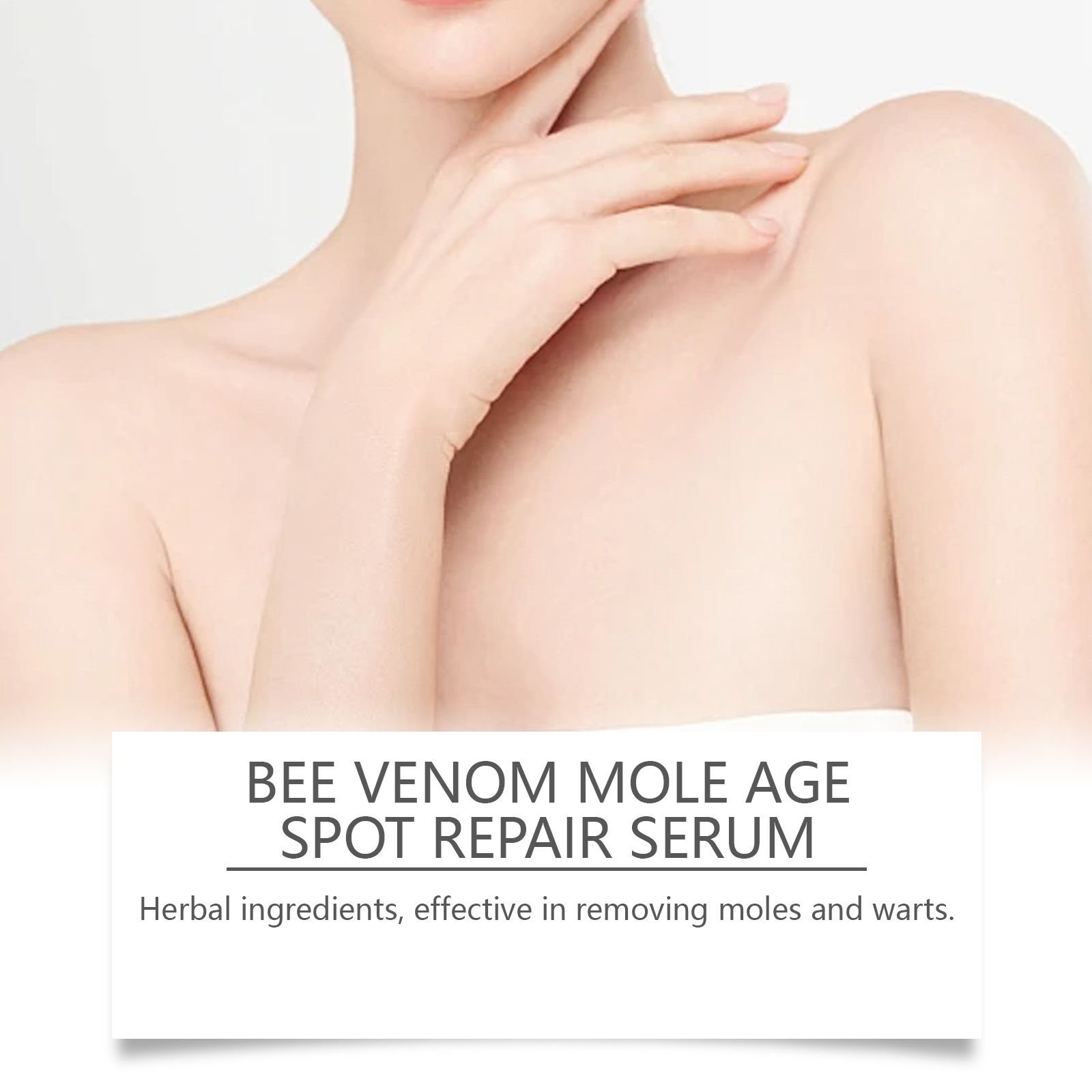 Our bee Venom Skin serum contains Phellodendron extract and tea tree oil. It can moles and warts quickly, with remarkable results. Its application is simple: thoroughly clean the skin and dry it first. Apply appropriate amount of this product to the skin with moles, warts, skin spots, etc. Massage gently until fully absorbed. And herbal ingredients, mild and non-irritating, suitable for all skin types.