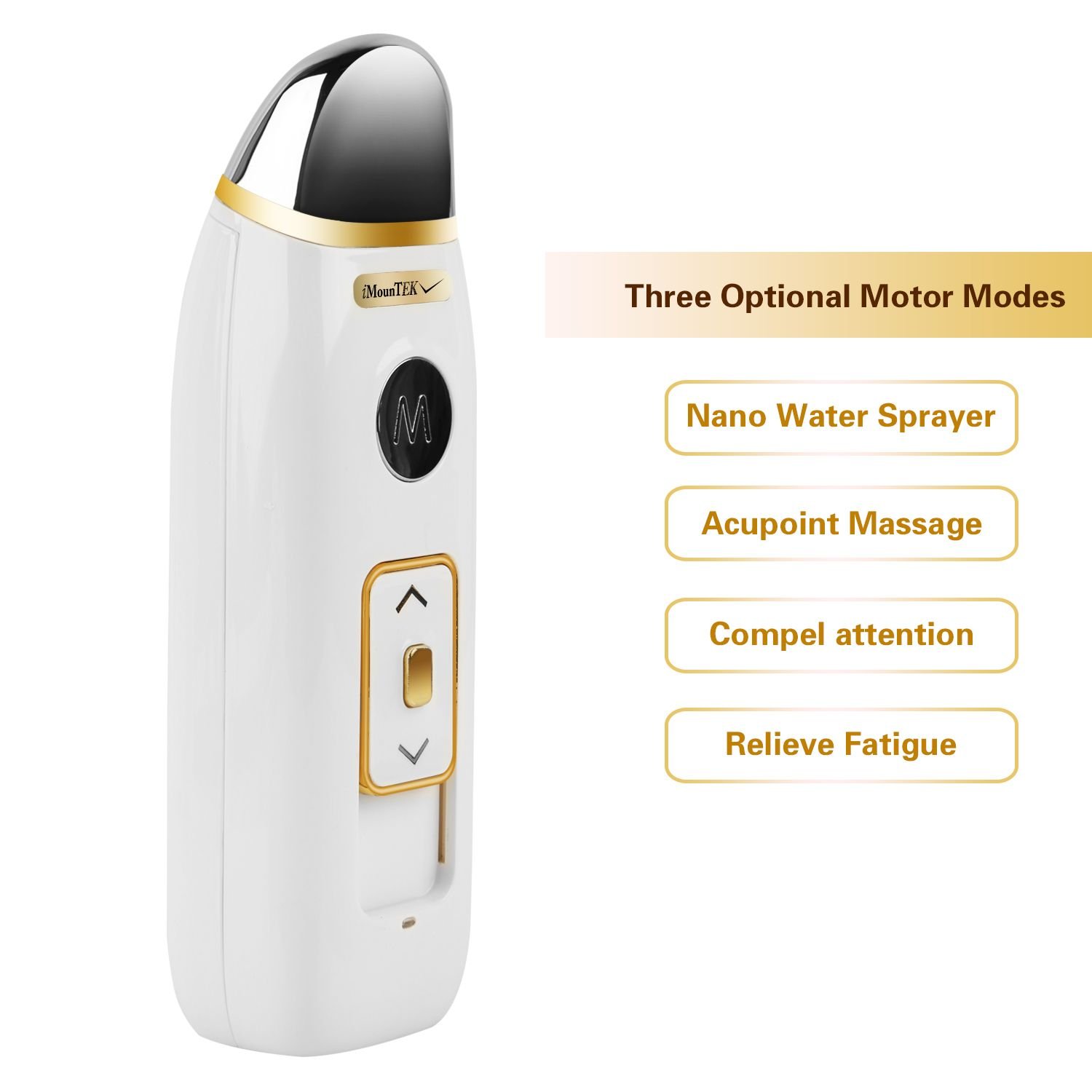 Nano water sprayer for hydrating and refreshing60 seconds mist spraying Apply onto your back,neck,shoulder and head for acupoint massage3 optional vibration massage modes through one-button control*:continuously high-frequency vibration,normal vibration with long intermission,and low-frequency vibration with short intermission