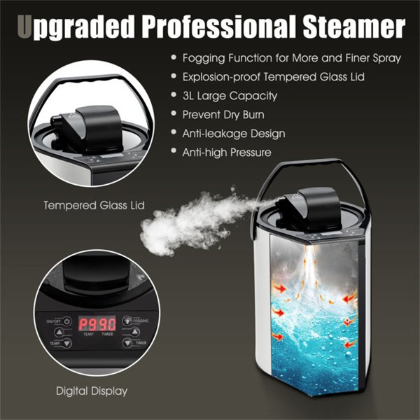 ● Upgraded Steamer with Atomizing Function: The ETL certified 3L steam pot is equipped with explosion-proof tempered glass lid, automatic power-off function and leakage protection, which ensures your safety when in use. The atomizing function brings finer and more spray, so it is more moist and skin-friendly.