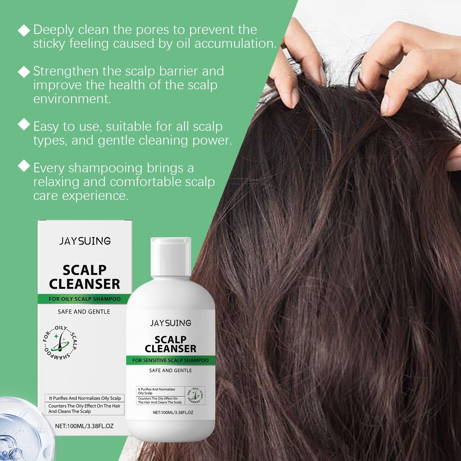 Our Oil Control Scalp Treatment Shampoo contains Sodium Laureth Sulfate, Cocamidopropyl Betaine, and Decyl Glucoside. It helps cleanse scalp oil for a refreshing experience. It improves scalp oil secretion and keeps the scalp fresh and clean. It is easy to use: thoroughly wet scalp and hair with warm water apply appropriate amount of this product on hands and knead it into foam, then apply the foam on scalp and hair and massage for 3-5 minutes. Rinse with warm water. And the hair is fresh and long lasting after use.